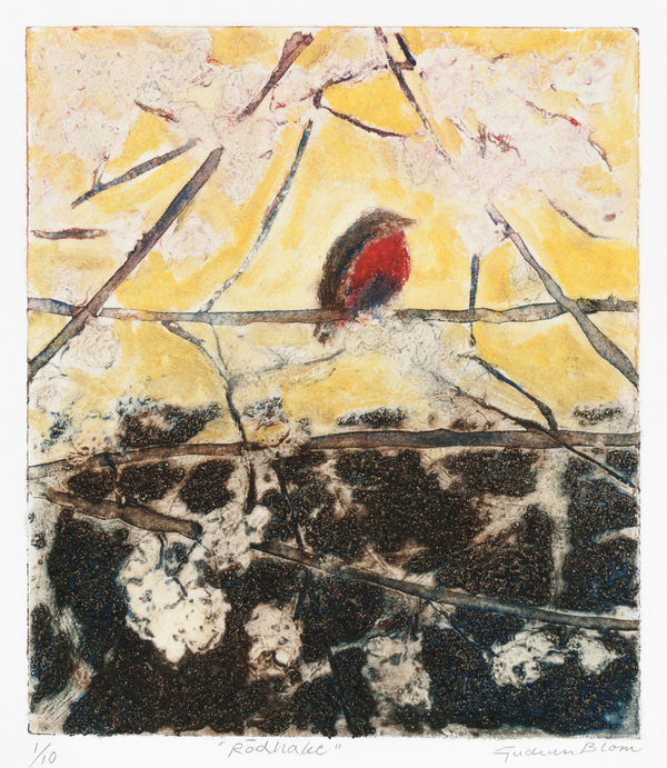Klicka för att förstora bilden Rödhake Konstnär: Gudrun Blom Mått: 21 x 18 cm Upplaga: 4/10 Teknik: djuptryck 1 050,00 kr 1 050,00 kr