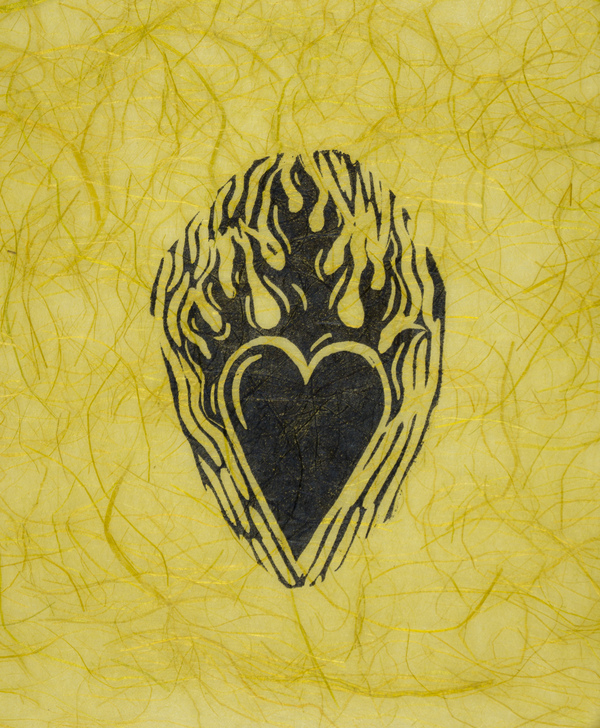 Klicka för att förstora bilden utan titel (hjärta på gult papper) Konstnär: Simba Sinkkonen-Björk Mått: 18 x 15 cm Upplaga: Teknik: högtryck